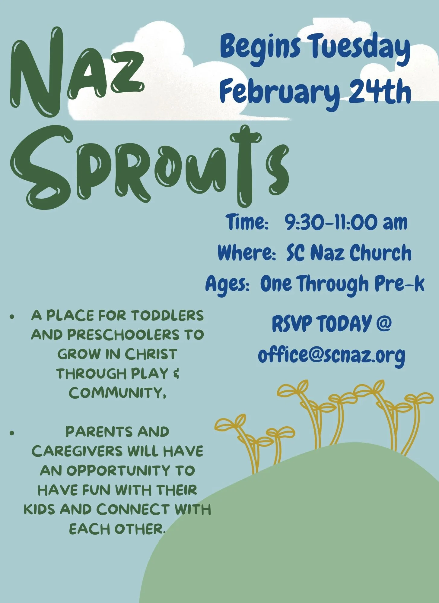 NazKids meets every Sunday at 10:00am. Classes are offered for kids, Birth through 6th grade Check Out What Is Happening In Naz Kids Plan a visit >>>
